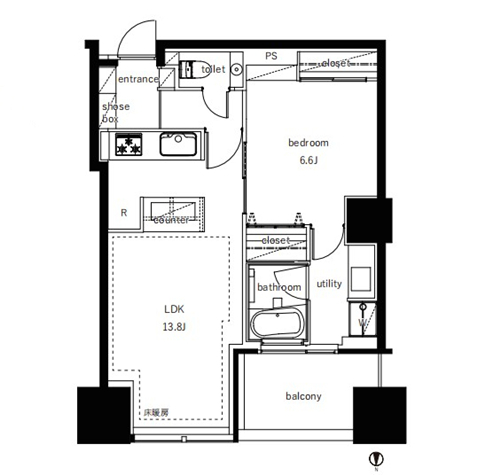 2009年2月建成的大規模高層公寓,永久產權,符合新抗震標準。位于東京都江東區,近鄰東京メトロ有樂町線【豊洲】站,車站周邊匯集了復合商業設施,還有與公寓樓相鄰的大型超市,附近設有沿著公園和運河的散步道,便利的居住環境。公寓樓地上48層付地下1層, 設有門禁、快遞柜,24小時有人管理,客室、觀影室、卡拉ok室等共用設施充實,有駐車場,可飼養寵物(有細規)。公寓位于26層,視野開闊,52.50㎡1室1廳,客餐廳有地暖,衛浴獨立,詳情歡迎咨詢。海外客戶可以申請日本銀行貸款購房,目前有兩種方式:1.需要在日本設立公司,以法人名義購買,貸款額度約60-70%、還款周期25-35年、貸款利率1.5%起。2.個人名義購買,海外客戶可以申請日本個人抵押貸款購房,不需要設立公司,貸款額度約50-60%,還款周期15-25年,貸款年齡65歲以內,貸款額度不能低于2000萬日元,貸款利率2.7%起。