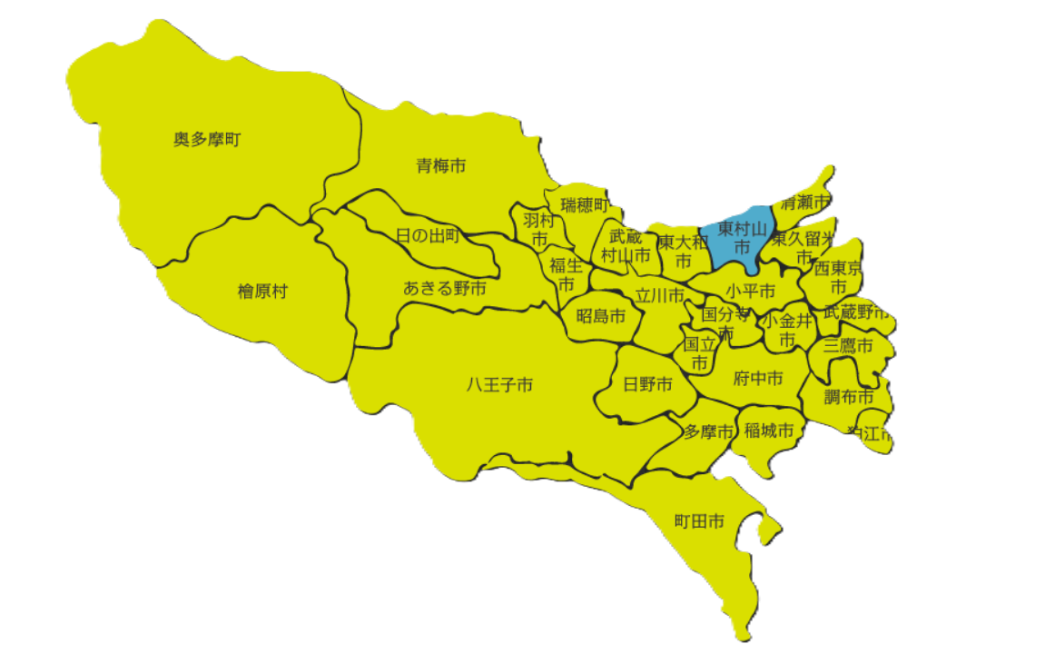 1. 位置:地處東京都西部的多摩地區,北鄰埼玉縣所澤市,東接清瀨市,南靠小平市,西連東大和市。