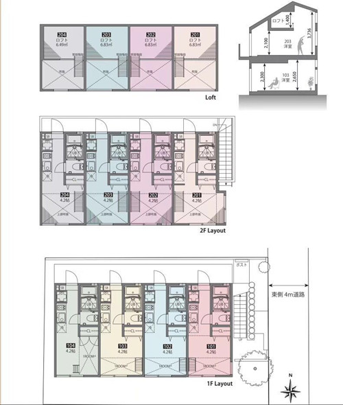 | 房型 | 1R+BF*4室 1R+LOFT*4室 | 朝向 | 南北 |