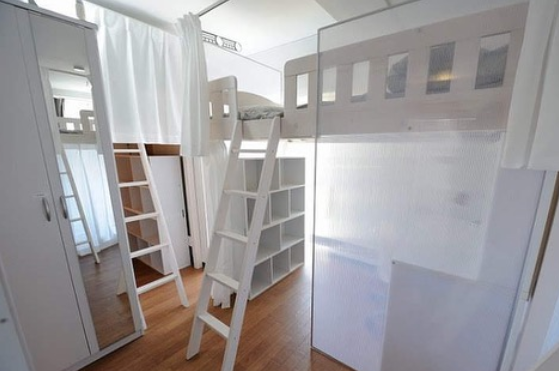 床位就比較類似青年旅館的上下鋪布局,租客只能獨享床位部分,比較適合行李少的出差或旅行等,月租金約3萬日元左右。