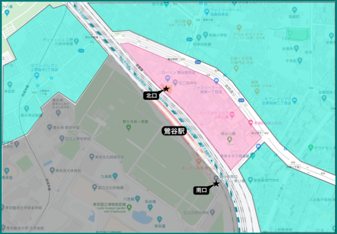 同時,鶯谷離上野其實也很近,車站南口離上野公園后門較近,徒步15-20分鐘即可到達上野商業區,也是假日休閑的好去處。