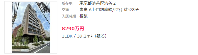 距涉谷站步行8分鐘,面積為39.2平方米,2021年6月竣工的1LDK新建公寓項目的售價為8290萬日元。