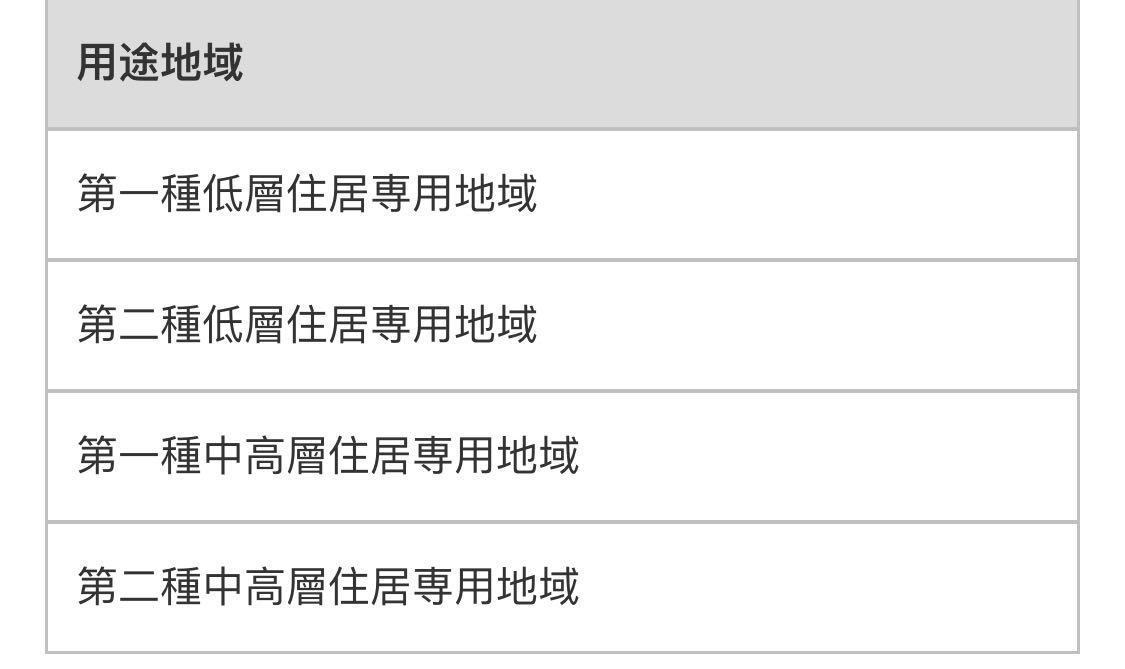 例如,如果在132平方米的占地面上積建造了66平方米的建筑面積的建筑物,其建蔽率為50%。也有人想把難得的土地毫無浪費(fèi)地用在建筑物上,但從防災(zāi)和通風(fēng)的觀點(diǎn)來看,建蔽率過高的房子是不安全的。因此,為了設(shè)置一定程度的空地,引導(dǎo)大家建造寬敞的建筑物,政府根據(jù)建筑基準(zhǔn)法對建蔽率設(shè)置了限制。 但建蔽率的限制因地區(qū)而異,也就是說,由于不同地區(qū)的城市規(guī)劃不同,那里作為住宅區(qū)或商業(yè)區(qū)的用途根據(jù)各市町村進(jìn)行了細(xì)致的分類。 其使用途徑作為“用途地域”分為12種(從平成30年4月1日開始,預(yù)定追加田園住宅地域),各自的建蔽率限制有微妙的不同。下面我們就來看一下與住宅有關(guān)的用途地區(qū)。