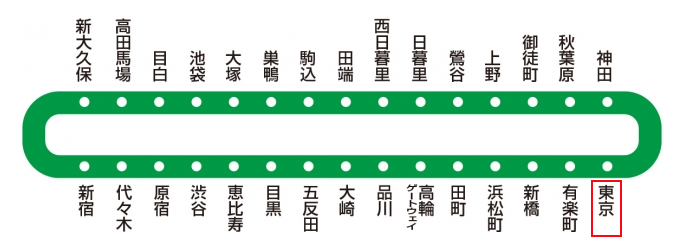 東北新干線、北海道新干線、山形新干線、秋田新干線、上越新干線、長野新干線、東海道線、中央線(快速)、總武線(快速)、橫須賀線、京葉線、山手線、京濱東北線、成田特快、東海道新干線、東京地下鐵、丸之內線。