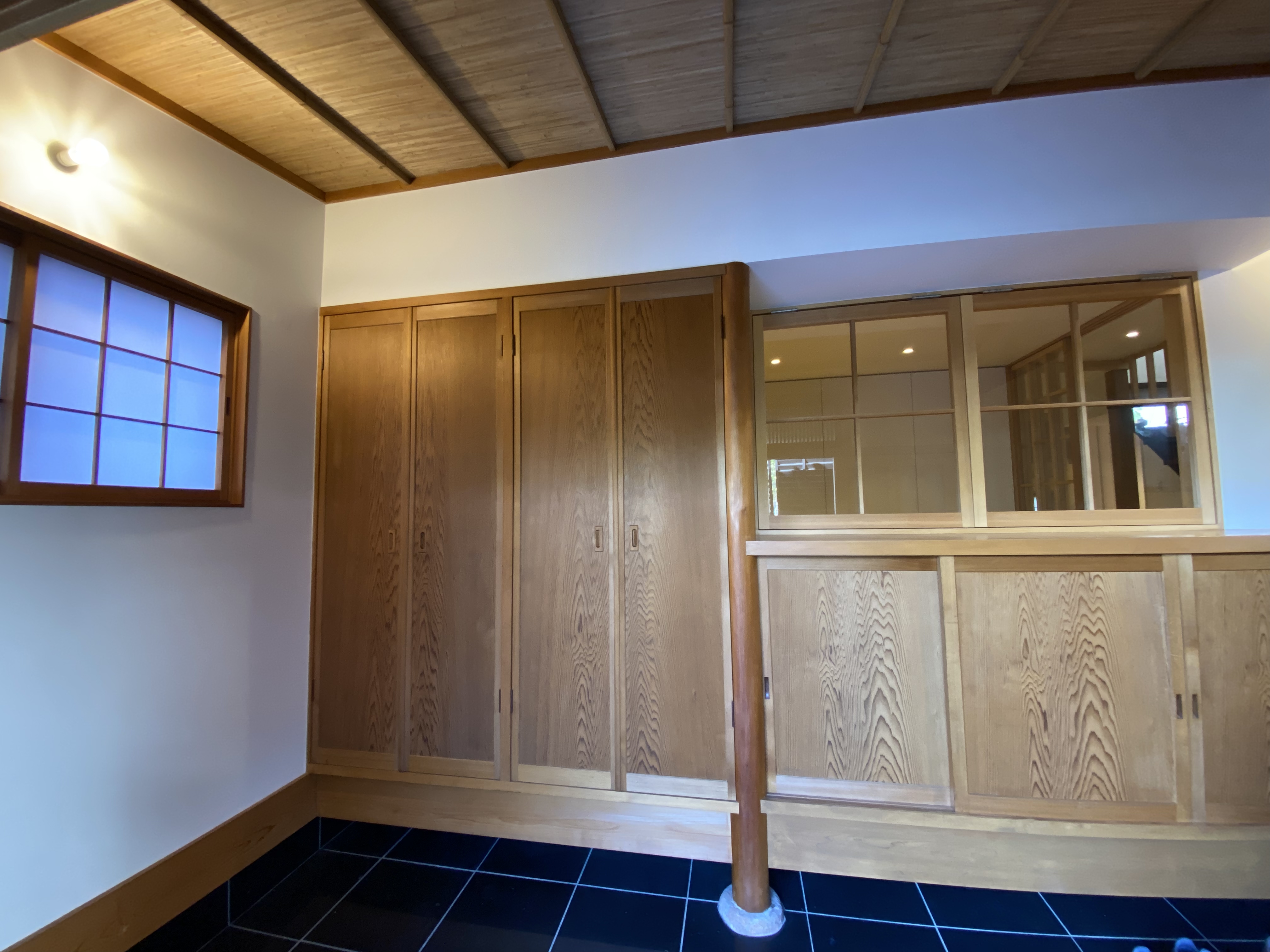 一看到一戶建的入戶大門,便可以看出房子的大概年代,這種圓木做梁,木制格柵推拉門是新建一戶建所沒有的。