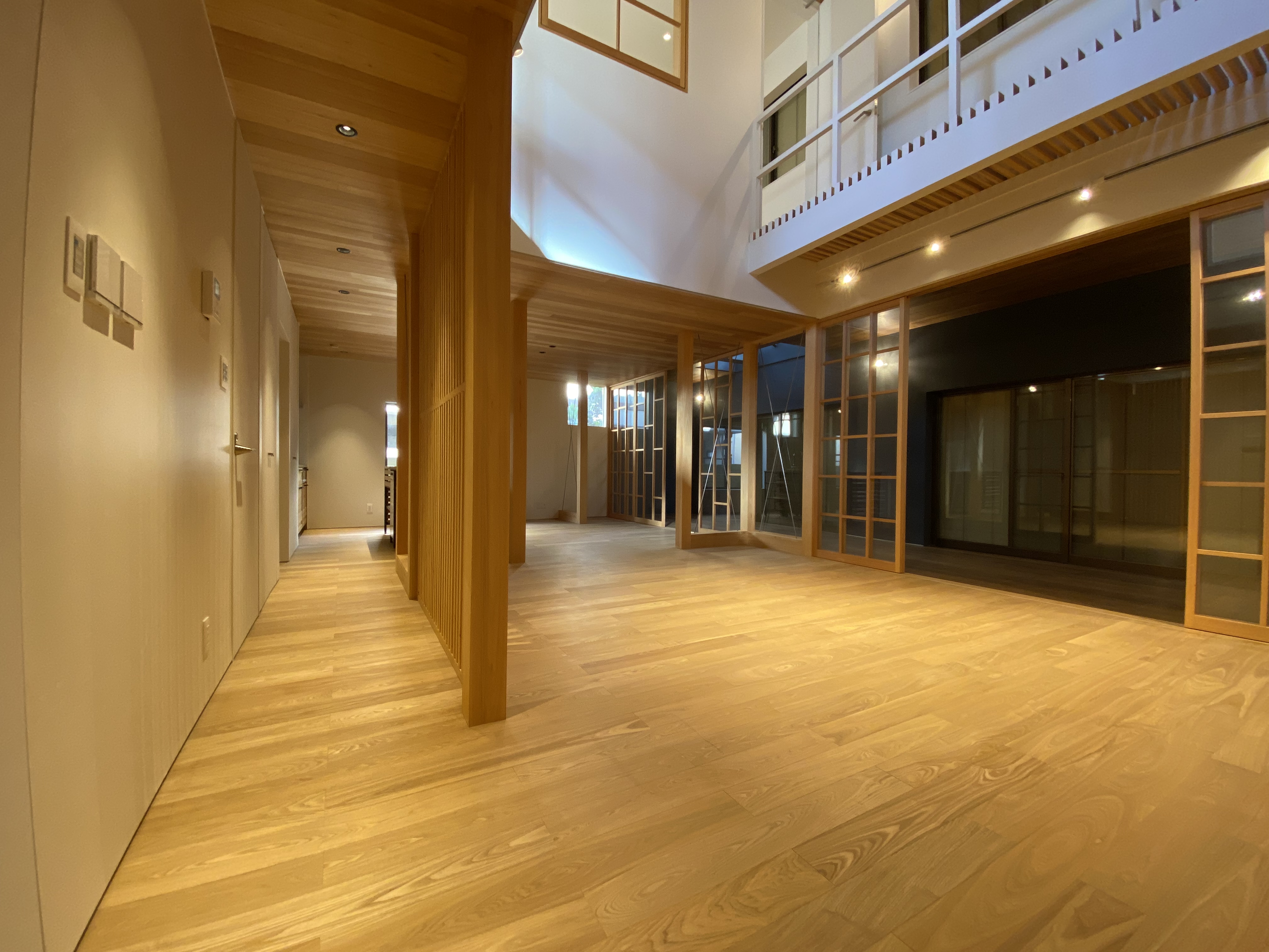 面向水屋,轉向右側,會發現瞬間穿越會現代,寬敞、簡約的空間讓人豁然開朗,古樸的本色原木,以格柵及隔障門的方式呈現在眼前,在傳統講究的日式風格中又透露著現代的簡約,“大奢至簡”的理念貫徹其中。