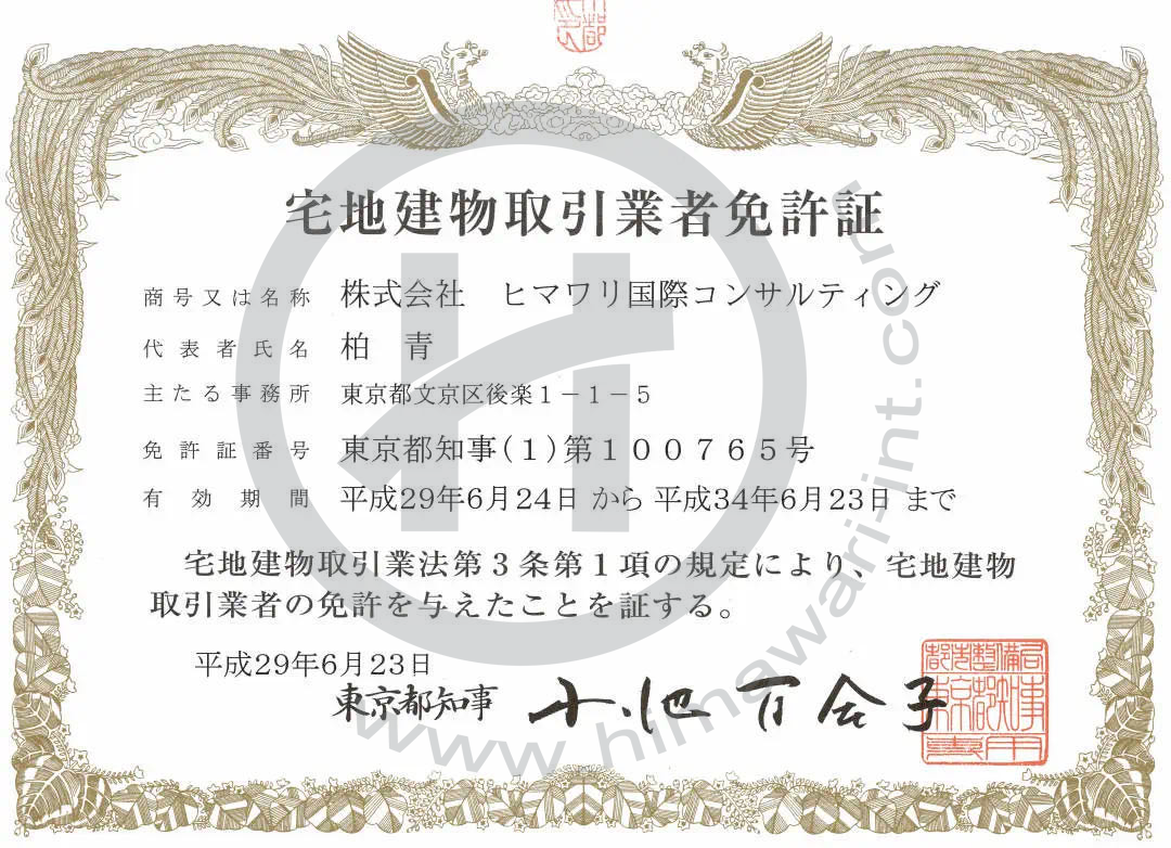 那么,在人生地不熟的海外,要如何才能找到一家專業的中介機構呢?其實,選擇房地產中介最重要的考察因素就是——有沒有官方頒發的中介資質,就像正規公司都有工商許可證一樣。以日本為例,和成立普通的公司不同,想在日本設立不動產中介公司,需要具備不動產許可證。這個許可證相當于經營許可執照,內容包括:公司名稱、法人代表、公司地址、許可證編號、有效期等信息。
