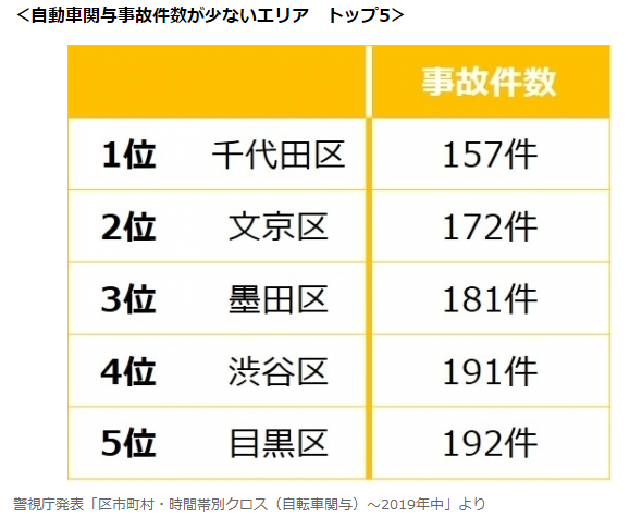 根據(jù)東京警視廳官網(wǎng)公布的數(shù)據(jù),2019年在東京都內(nèi)發(fā)生的人身交通事故總數(shù)為30,467件,那交通事故發(fā)生最少的地區(qū)在哪里呢?