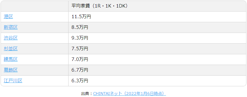 從上面的統計表也可以看出,除了都心5區外,在其他都內區都可以找到合適的房源。杉並區、練馬區是東京比較人氣的居住區域;葛飾區、江戶川區等也是充滿了下町風情的居民區,均非常適合居住。