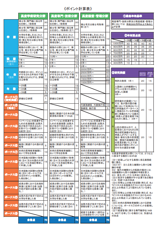 日本高度人才簽證評分表