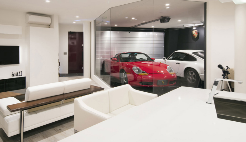 坐在自家的客廳就能欣賞到車庫的豪車,像保護藏品一樣將車庫與客廳之間用玻璃墻相隔,平添一份生活的樂趣,這樣的滿足感通過私人訂制的住宅就可以實現(xiàn)。