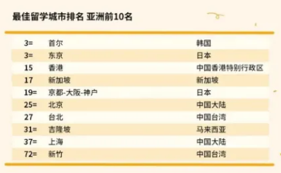 根據全球高等教育和商科教育研究機構(Quacquarelli Symonds) 發布的2022年世界最佳留學城市排名中,應該倫敦常年位列第一,其次是德國慕尼黑屈居第二,韓國首爾和日本東京并列第三,其中東京也是多年排名榜單前三名。