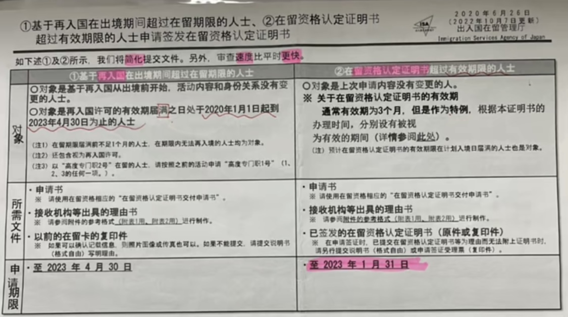 根據(jù)日本出入國管理廳于2022年10月7日更新的信息顯示,對(duì)于在留資格認(rèn)定證明書超過有效期的人士,對(duì)象是上次申請(qǐng)的內(nèi)容沒有變更的人,“關(guān)于在留資格認(rèn)定證明書有效期通常有效期為3個(gè)月,但是作為特例,根據(jù)本證明書的辦理時(shí)間,分別設(shè)有被視為有效的期間”。