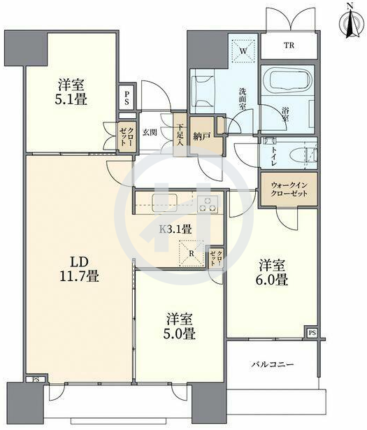 房產(chǎn)戸型:3室1廳(南向)