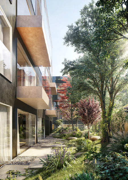 青山雅筑項目既保留了日式建筑“禪”的意境,又注重歐美建筑對“型”的塑造。于是外表裹著格柵與竹影、內含四季的庭院景觀的建筑便出現在世人眼前,虛實結合的建筑元素,瞬間將靜逸與喧囂分隔成兩個世界。