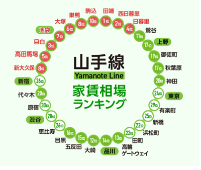 JR山手線房租相對較低的車站排名