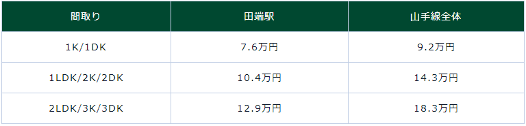 由此不難看出,不管是哪種戶型,田端站的租金水平都明顯低于山手線各站,說是山手線上房租最便宜的街區一點都不為過。對于想住在治安好、出行便利且租金較低的安靜街區的人來說,田端站是非常推薦的地方。