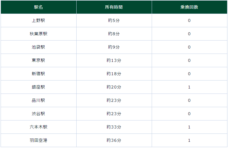 從田端站去東京各地都很方便,可以乘坐人氣的“山手線”和“京濱東北線”,出行便利,換乘0次或1次即可到達東京都內的各主要車站。