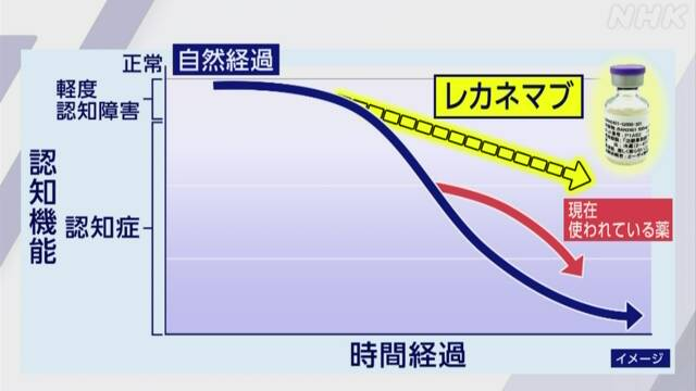 「レカネマブ」は、アルツハイマー病の患者の脳にたまる異常なたんぱく質「アミロイドβ」に抗體を結合させて取り除くことで神経細胞が壊れるのを防ぎ、病気の進行そのものを抑えることを目的としています。