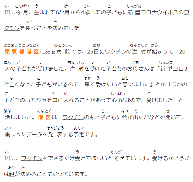 港區(qū)では接種を受けた親子に対して副反応や発熱に関するアンケートに協(xié)力してもらい、まとまりしだい、データを公表することにしています。