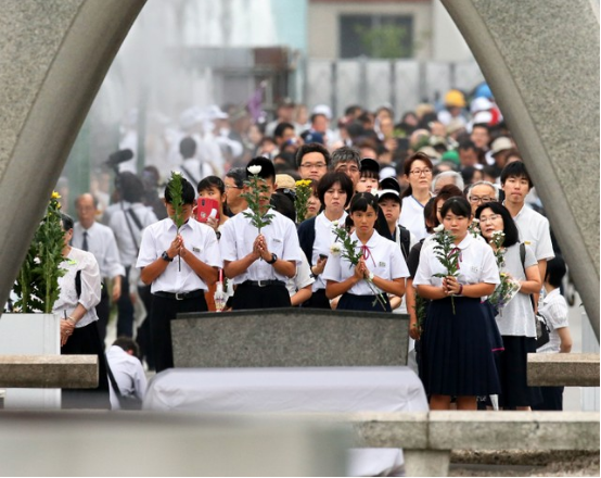8月6日是廣島遭受原子彈轟炸74周年的“原爆之日”。當天,在廣島市中區的和平紀念公園,約有5萬人在雨中參加了和平紀念儀式。其中包括原子彈爆炸受害者、遺屬及92個國家的駐日大使等人。參加者在原子彈被投下的上午8點15分,集體向遇難者進行了默哀。