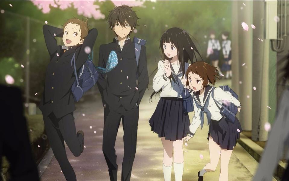 然后是《冰菓》(2012年)的大結(jié)局第22集。以鄉(xiāng)村風(fēng)光為背景,纖細(xì)地描繪出缺乏朝氣的少年和文靜的女主角,高中生男女之間的距離逐漸接近至“愛情”的酸甜與焦急。