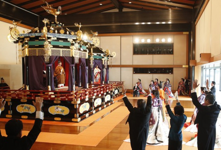 據悉,本次儀式大致沿襲了現行憲法下首次舉行的平成即位儀式。