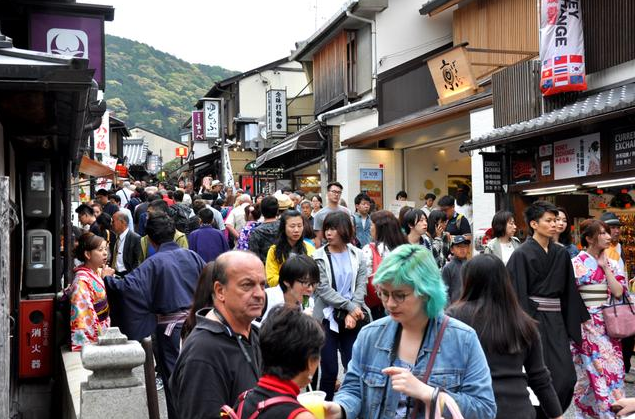 急劇增加的外國游客正蜂擁至日本首屈一指的觀光城市--京都,這對(duì)當(dāng)?shù)鼐用竦娜粘I钤斐闪艘庀氩坏降挠绊懀?/p>