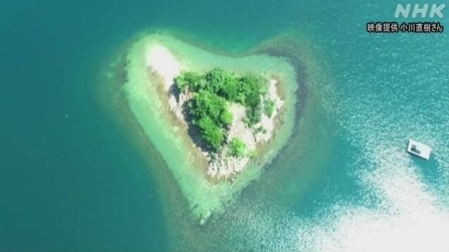 日本德島縣鳴門市內(nèi)海的一個(gè)島嶼呈現(xiàn)出了“心形”的形狀,以此作為該縣新增旅游資源加以推廣,當(dāng)?shù)芈糜螛I(yè)界相關(guān)人士等舉行了參觀會(huì)。